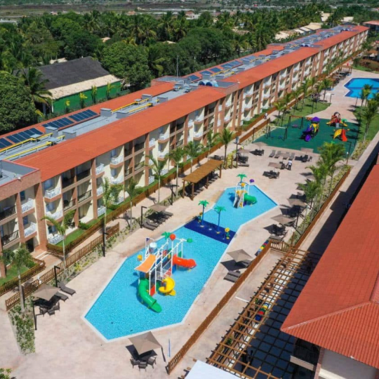 Sua hospedagem será no Ondas Praia Resort, localizado na tranquila Praia do Mutá, a poucos minutos do centro de Porto Seguro. Este resort all inclusive oferece uma estrutura completa para toda a família, com piscinas para adultos e crianças, academia, sauna, quadra poliesportiva e acesso direto à praia. Além disso, o resort conta com restaurantes, bares, sorveteria e programação de lazer para todas as idades.